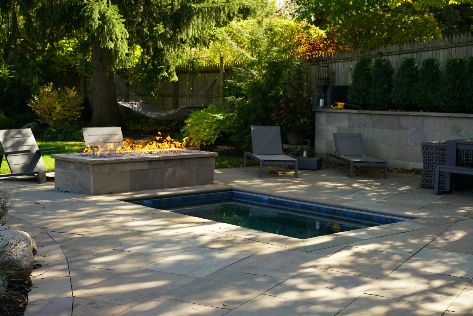 The theme of this private back yard retreat was Fire & Water